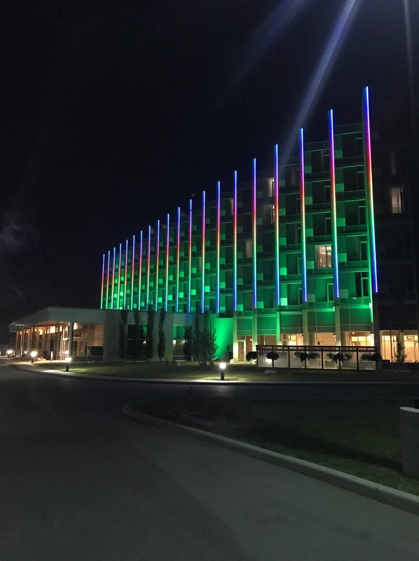 Dynamic multi-colour LED installation for commercial building facade